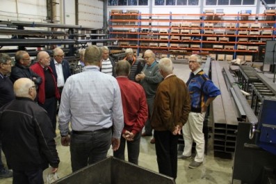 Ikke mindre imponerende var Laserhallen, og her fikk vi se en av de to maskinene i aksjon, også her presisjon og fart. Den første lasermaskinen var tatt i bruk i 2006, den nyeste i 2008. Etter en meget interessant omvisning ble vi samlet i kantinen der det ble servert kaffe og nybakt kake. Leo Larsen fortalte da litt mer om bedriften fra den ble startet opp av Rolf Nilsen i 1978. Han eide fortsatt 59% av aksjene, hans 4 sønner 10% hver og Roy Langseth 1%.